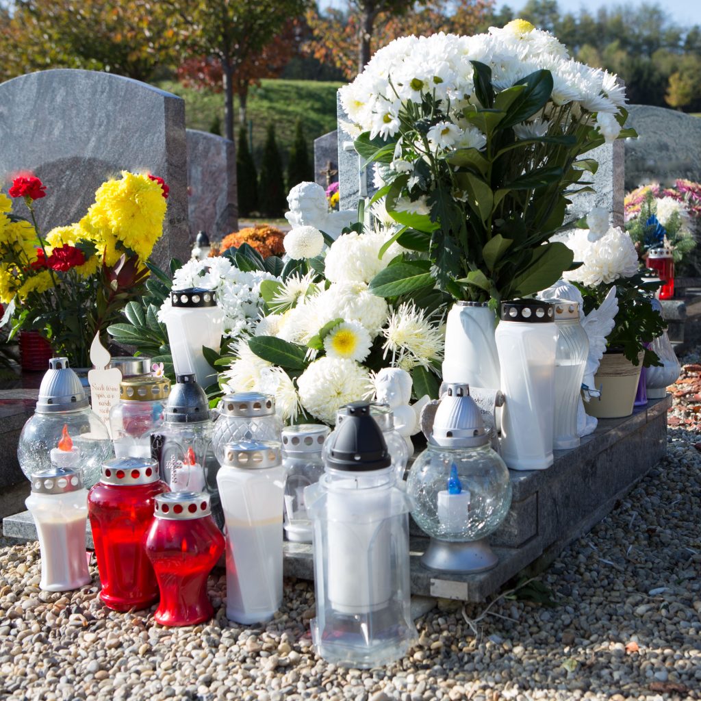 - Les statuettes, sculptures, lanternes : à déposer sur la pierre tombale